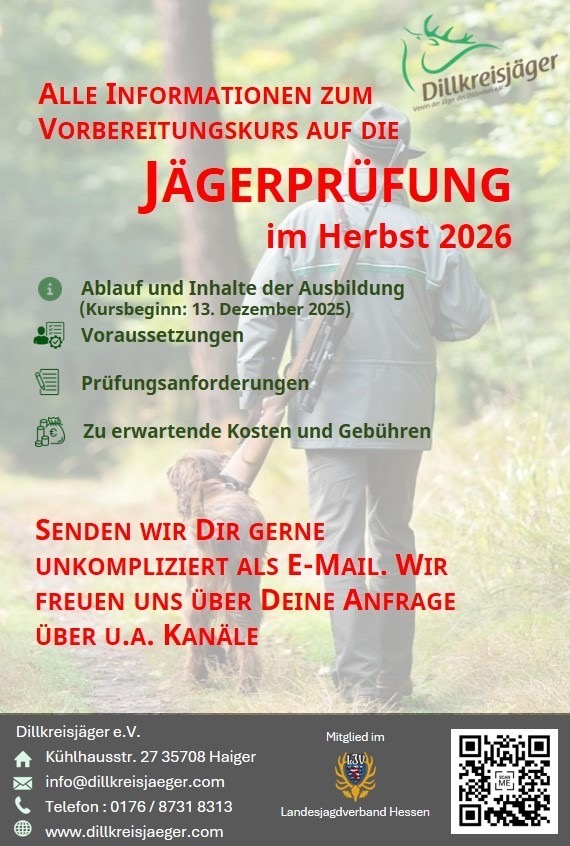 Informationen zum Vorbereitungskurs auf die Jägerprüfung im Herbst 2026