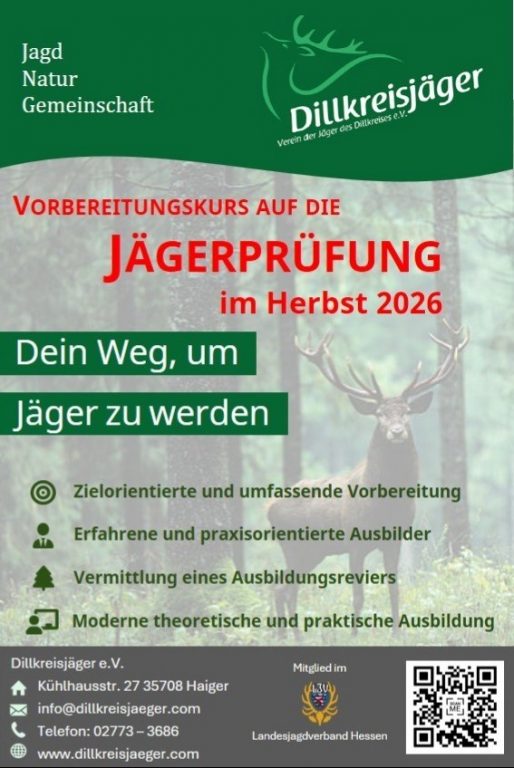 Informationen zum Vorbereitungskurs auf die Jägerprüfung im Herbst 2026